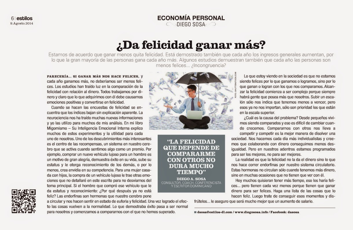 Cuando se hacen las encuestas de felicidad se encuentra que los índices bajan sin explicación aparente. La neurociencia nos ha traído muchas nuevas informaciones y yo las utilizo para muchos de mis análisis. En mi libro Migomismo – Su Inteligencia Emocional Interna explico muchos de estos experimentos y la utilidad para cada uno de nosotros.