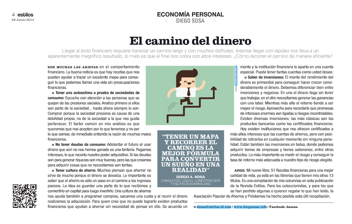 AVISO: Mi nuevo libro, 51 Recetas Financieras para una mejor calidad de vida, ya está en las librerías que tienen mis otros 13 títulos. Es una compilación de mis columnas en esta publicación de la Revista Estilos. Para los coleccionistas y para los que se han perdido algunas o quieren regalar lo que han leído la Asociación Popular de Ahorros y Préstamos ha hecho posible esta útil recopilación.