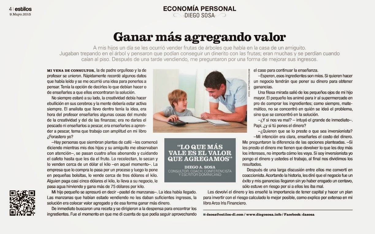 A mis hijos un día se les ocurrió vender frutas de árboles que había en la casa de un amiguito. Jugaban trepando en el árbol y pensaron que podían conseguir un dinerito con las frutas; eran muchas y se perdían cuando caían al piso. Después de una tarde vendiendo, me preguntaron una forma de mejorar sus ingresos.
