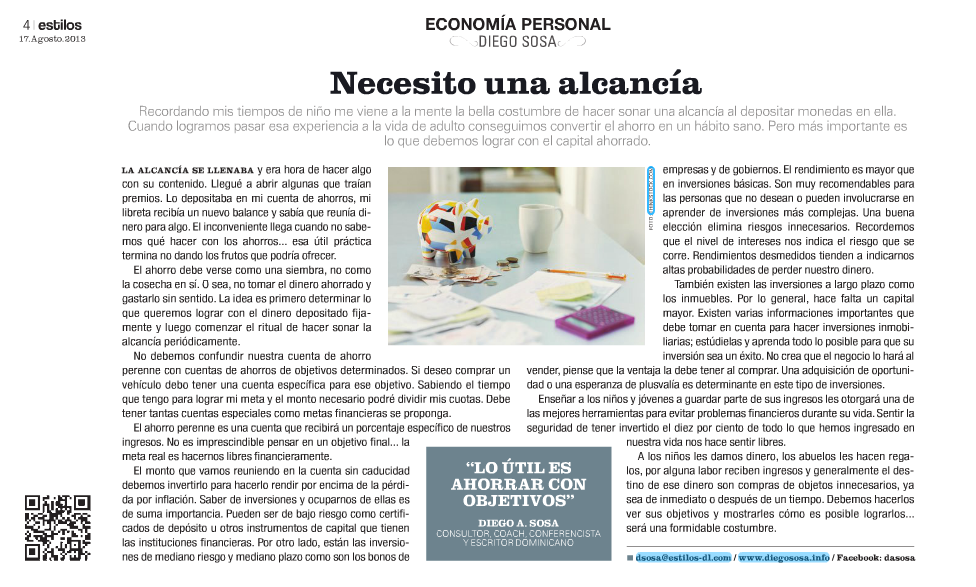 La alcancía se llenaba y era hora de hacer algo con su contenido. Llegué a abrir algunas que traían premios. Lo depositaba en mi cuenta de ahorros, mi libreta recibía un nuevo balance y sabía que reunía dinero para algo. El inconveniente llega cuando no sabemos qué hacer con los ahorros… esa útil práctica termina no dando los frutos que podría ofrecer.