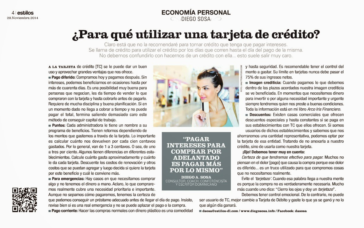 Para emergencias: Hay casos que necesitamos comprar algo y no tenemos el dinero a mano. Aclaro, lo que compraremos realmente cubre una necesidad prioritaria e importante, es una emergencia real. Aunque no sepamos con exactitud cómo pagaremos, tenemos la certeza de que podemos conseguir un préstamo adecuado antes de llegar el día de pago. Insisto, revise bien si es una real emergencia y no se puede aplazar el pago o la compra.
