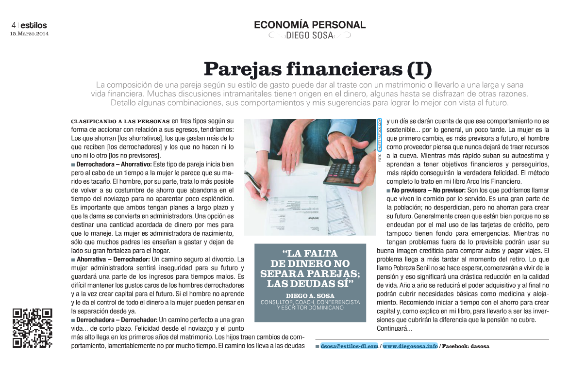 La composición de una pareja según su estilo de gasto puede dar al traste con un matrimonio o llevarlo a una larga y sana vida financiera. Muchas discusiones intramaritales tienen origen en el dinero, algunas hasta se disfrazan de otras razones. Detallo algunas combinaciones, sus comportamientos y mis sugerencias para lograr lo mejor con vista al futuro.