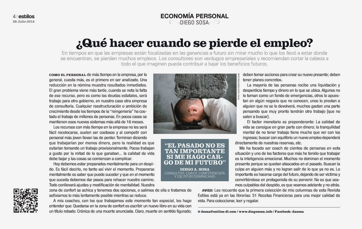 AVISO: Le recuerdo que la primera colección de mis columnas de esta Revista Estilos está ya en las librerías: 51 Recetas Financieras para una mejor calidad de vida. Para coleccionar, leer y regalar.
